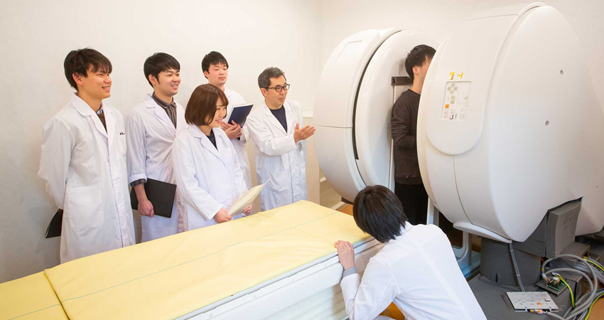 診療放射線技術学は最先端の医療技術を、生体情報の取得や治療に利用することを目的とする実践医学です。医学や薬学、理工学を幅広く修得し、人間性豊かな放射線技術者の育成を目指します。